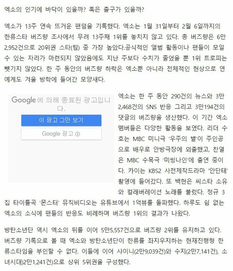 엑소에게 인기란 뭘까? 13주 연속 버즈량 1위