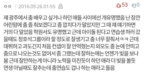 진짜 정호석뿐만아니라 방탄이들은 모두다 자기 꿈을위해서 달려가고 열심히 노력하는 모습이 너무보기좋음ㅜㅜㅜ 저렇게 까지 열심히 할필요가있나?이생각이 들정도로 그만큼 열심히하는거같음...그래서 난 갤러리에 방탄 일화같은거 모아놓고 현타오거나 내꿈 포기하고싶을때마다 저런거 읽으면 뭔가 다시 힘이 생기고 으쌰으쌰해지는게 있는것 같아 암튼 이제 컴백도 다가오고 ㅇㄱㄹ도 맨날 난리치는데 우리 이삐들 힘내쟈...♥