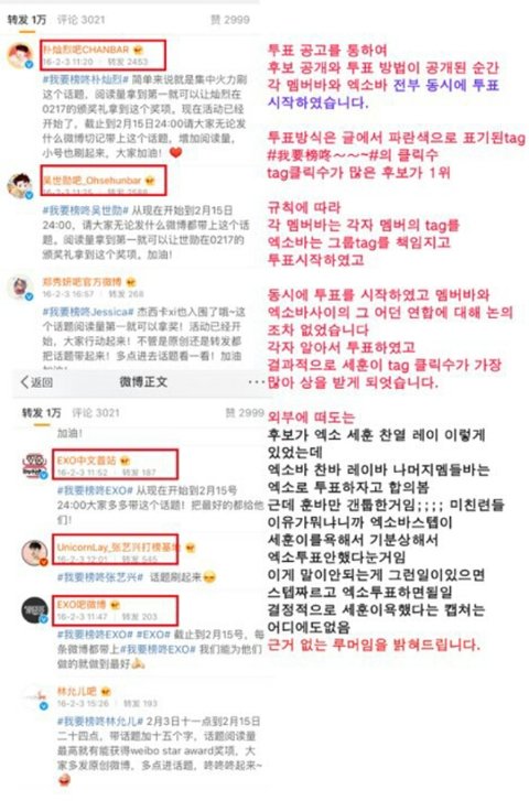 1.작년 웨이보스타상 독려과정에서 훈바 갠투표 독려를 통해 그룹투표 못하게 했다는거 루머임.