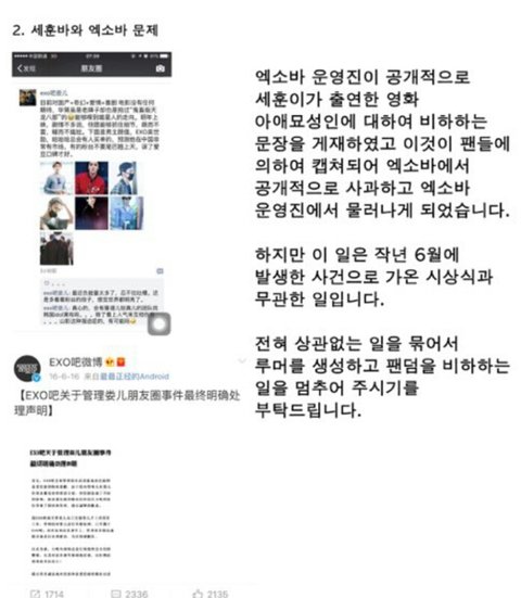 3.그룹바와의 마찰은 작년6월 일이며 전혀 관런없는 두가지 상황을 하나로 엮어서 퍼트린 상황임