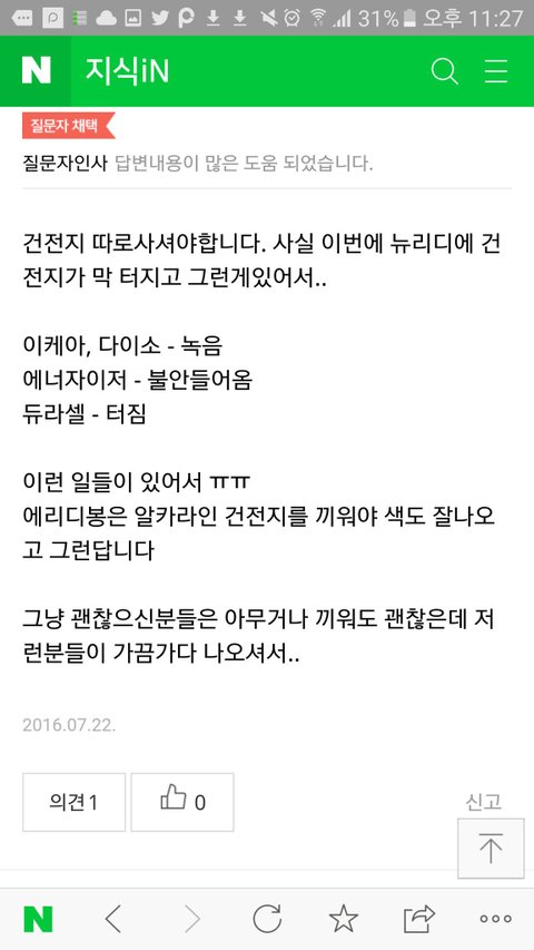 생각보다 건전지때매 안전사고 나는 경우가 많더라... 잘 보고 골라서 사!