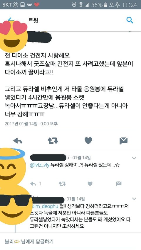 얘들아 응원봉 건전지 조심해서 사