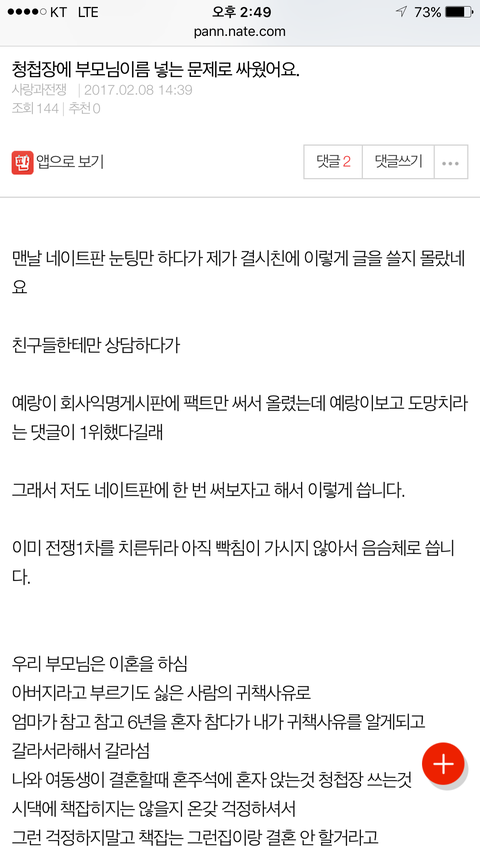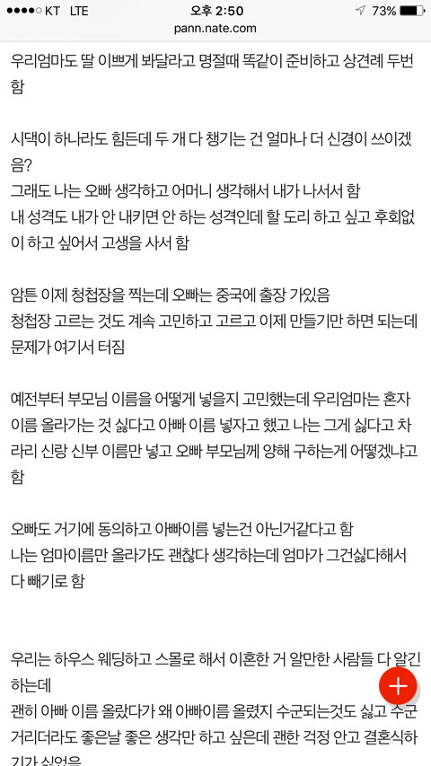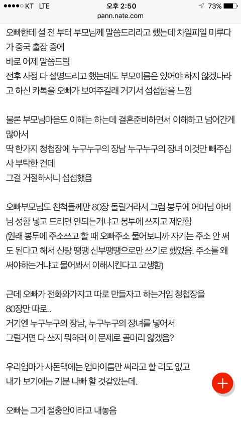 [원본지킴이]예랑 부모님 이름 청첩장에서 빼라는 예신