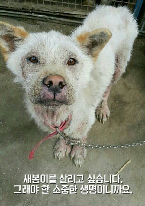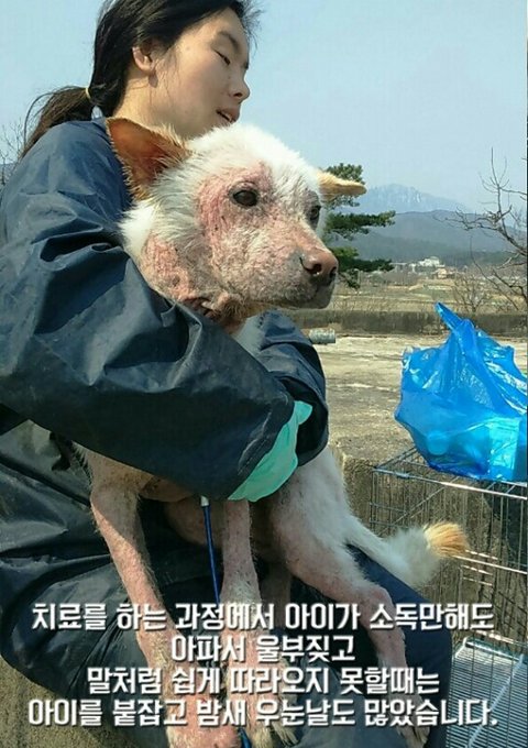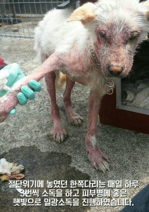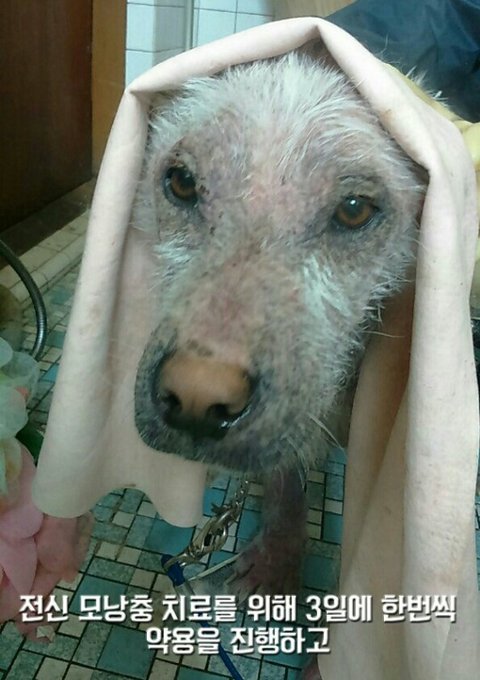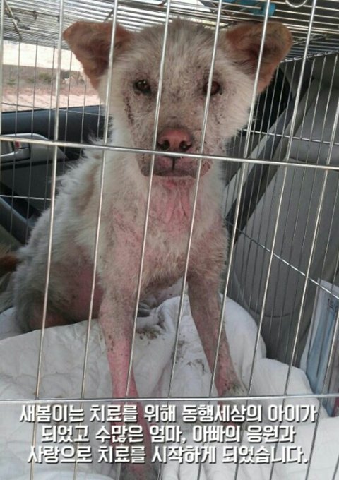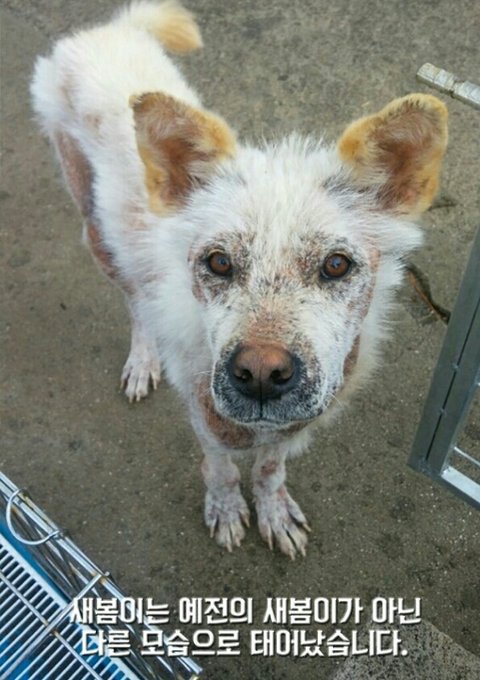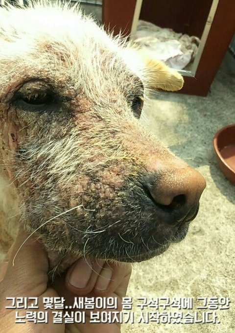 전신 모낭충으로 안락사를 권유받았던 진도견 새봄이.