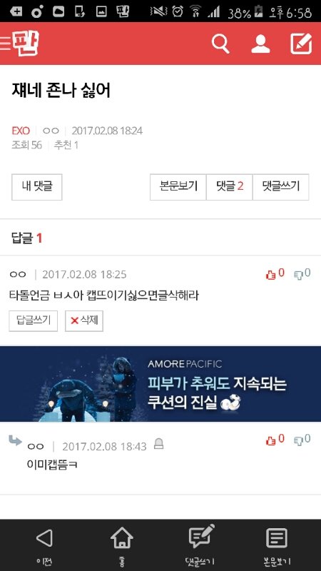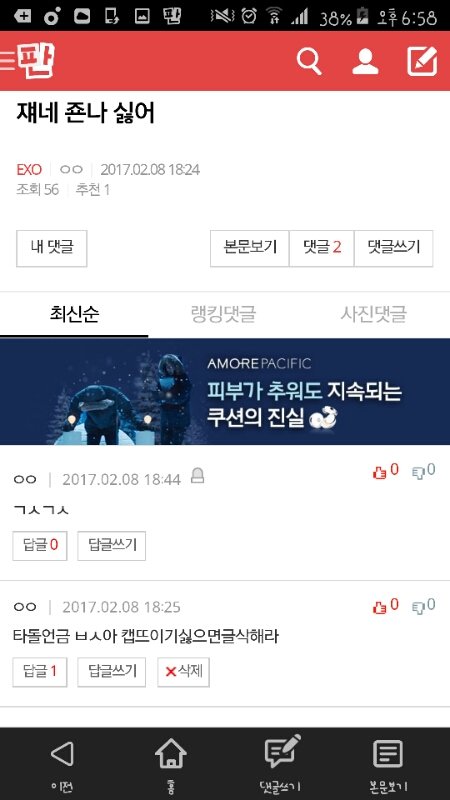 어그로 24시간 여기상주중인데 물타기에 휩쓸려서 이딴글쓰는녀늘 ㅈㄴ많음ㅋㅋㅋㅋㅋㅋ쟤는 댓글달렸는데도 삭제안한거보면 지가 글쓰고댓쓴어그로같은데 조카 빡치게하네씨빨아