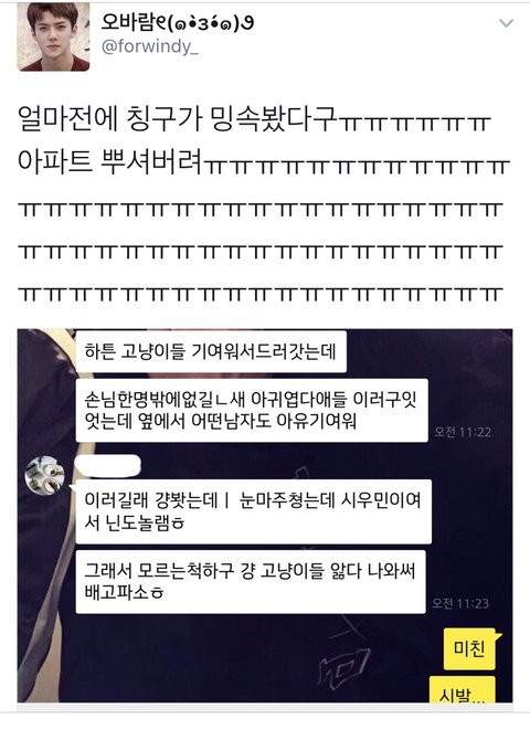 민석이 고양이보고 "아유 귀여워" 래ㅠㅠㅠㅠㅠㅠㅠㅠㅠㅠㅠㅠ