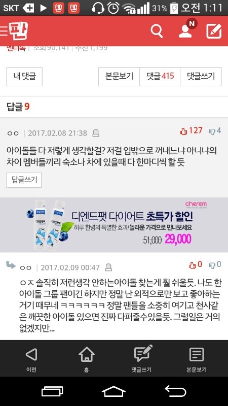 톡선 팬들 뒷담 깐 아이돌 글인데 ㅅㅂ 난 저런 생각 한 번도 안 해봄....ㅇㅇ ㅅㅁ 컴