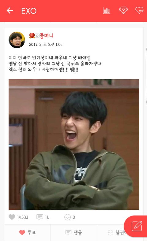 내가보기엔 성향이 중국민석팬덤이 세훈바인데