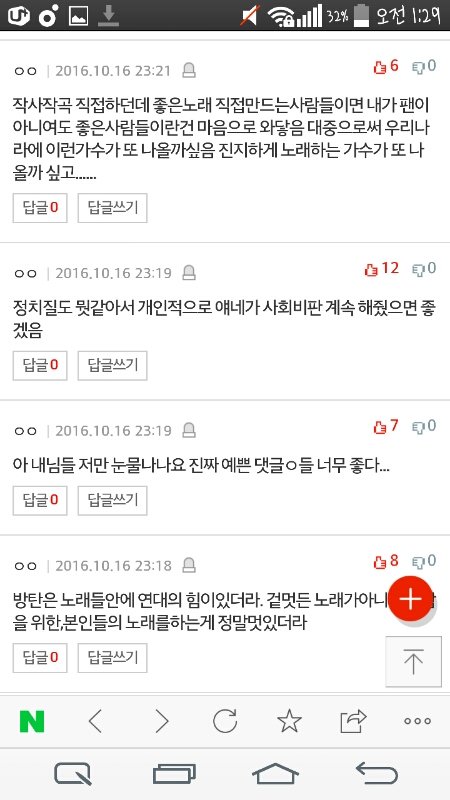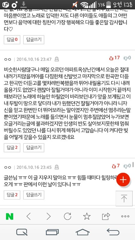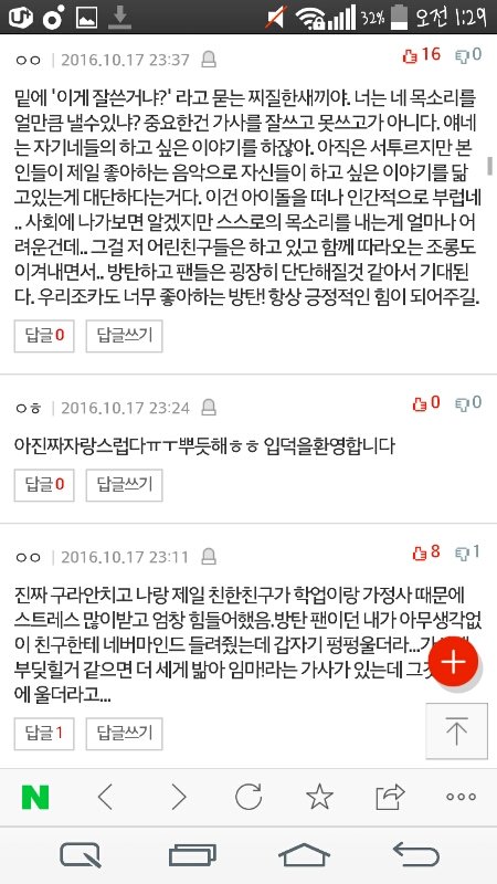 댓글 정리하다가 옛날에 봤던글 발견했는데 여기 댓글들 진짜 힐링되는것같다. 방부심이며 뿌듯함이며 울컥함이 한꺼번에 밀려오는데 맨날 음악성 음악성하는게 이런걸로 증명되는것같아서 진짜 힐링됨 ㅠㅠㅠㅠㅠ