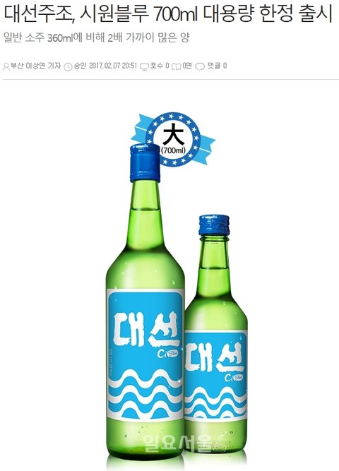700ml 댓병도 나온다하네여 이거 완전 소장 각인데 ㄷㄷ