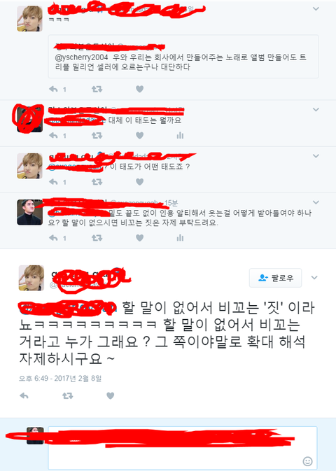 뭐라 해 나 말 조까 못해서