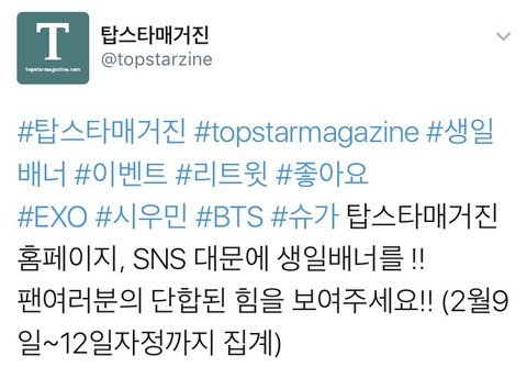 (시우민) 탑스타매거진 생일배너 이벤트!!