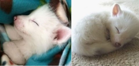뽀송뽀송한 어린 여우와 축쳐진 늙은 여우가 있다.