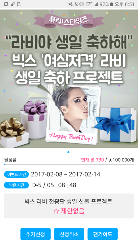 별빛들!! 랍식이 생일 서포트 이벤트 한대