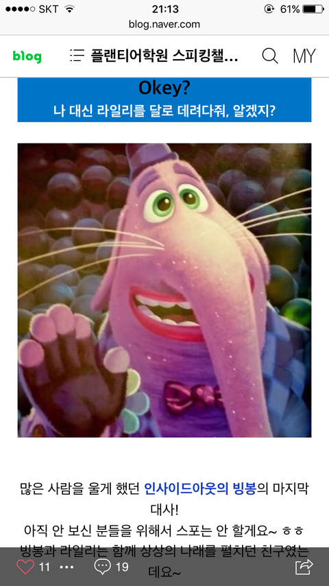 in사이드out 이게 왜 명대사인지아냐ㅜ