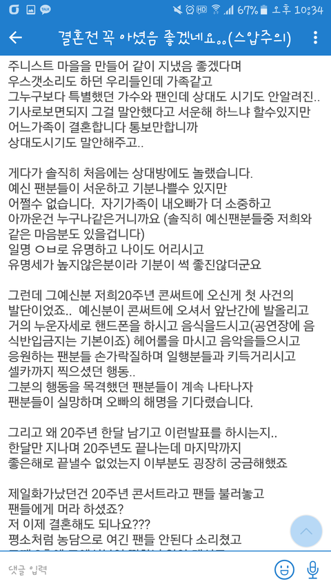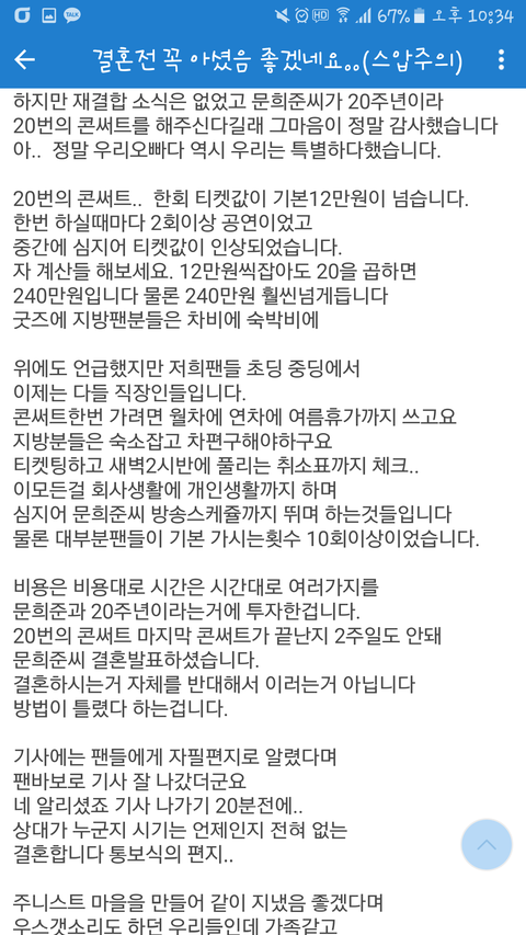 문희준이 결혼자금위해 공연했다 발언으로 팬들 난리남