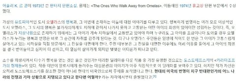 오멜라스를 떠나는 사람들 이라는책. 그리고 그 줄거리