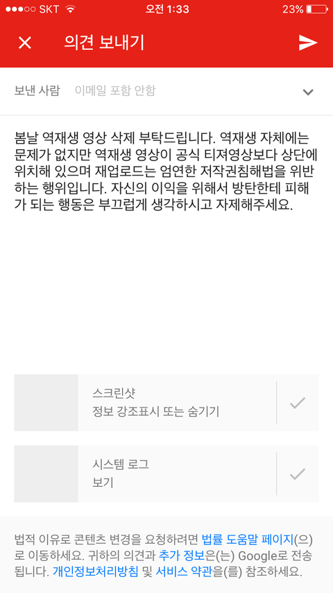 너튭 재업로드한 사람들한테 의견 한번씩 보내줘