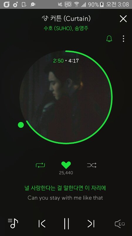 와 찬열이 노래 죤대노래 3위 올라가네