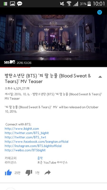 피땜때는 티저 좋아요가 지금까지 25만개정도에다가 조회수가 450만임