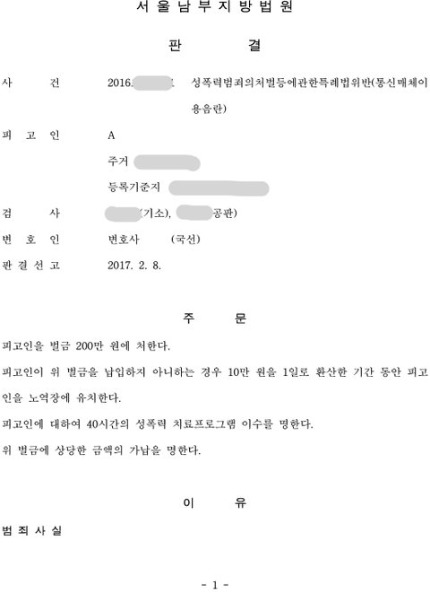 벌금 200만원에 성폭력프로그램 40시간 이수임ㅋㅋㅋㅋㅋㅋㅋㅋㅋㅋㅋㅋㅋㅋㅋㅋㅋㅋㅋㅋ