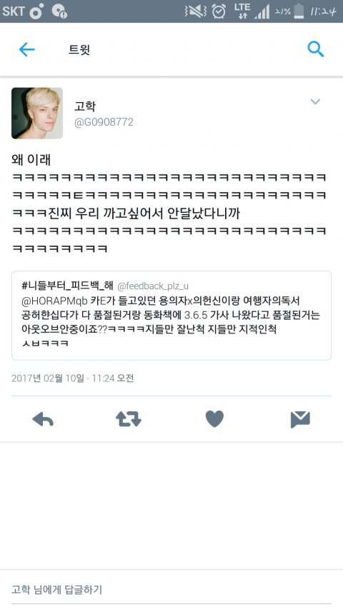 내가 얘 어떤 알계 엑소엘한테 텐미닛으로 시비털다가 역관광 개털린거 봄