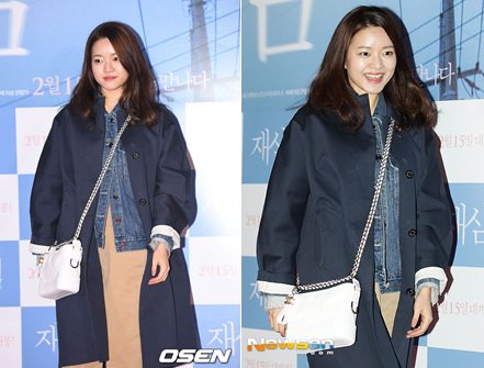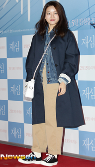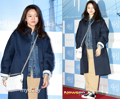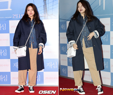 최근 한 시사회에서 네이비 코트에 와이드 팬츠를 코디 했었는데