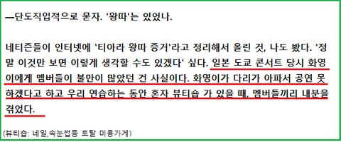 티아라도 화영도 모두 왕따가 아닌 불화라고 했고 티아라는 불화를 sns에 들어내서 죄송하다고 몇번 사과했어