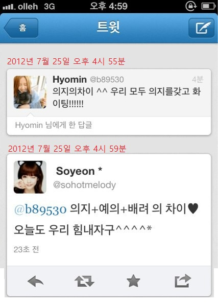 그러고 아침에 은정이 효민글에 답글을 남겨