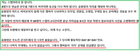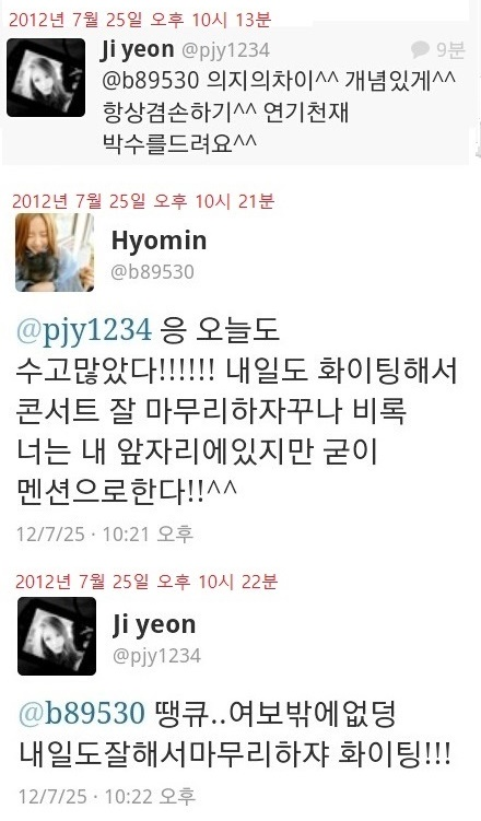 공연 마치고 저녁 10시쯤 지연이 효민과 대화를 해