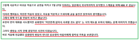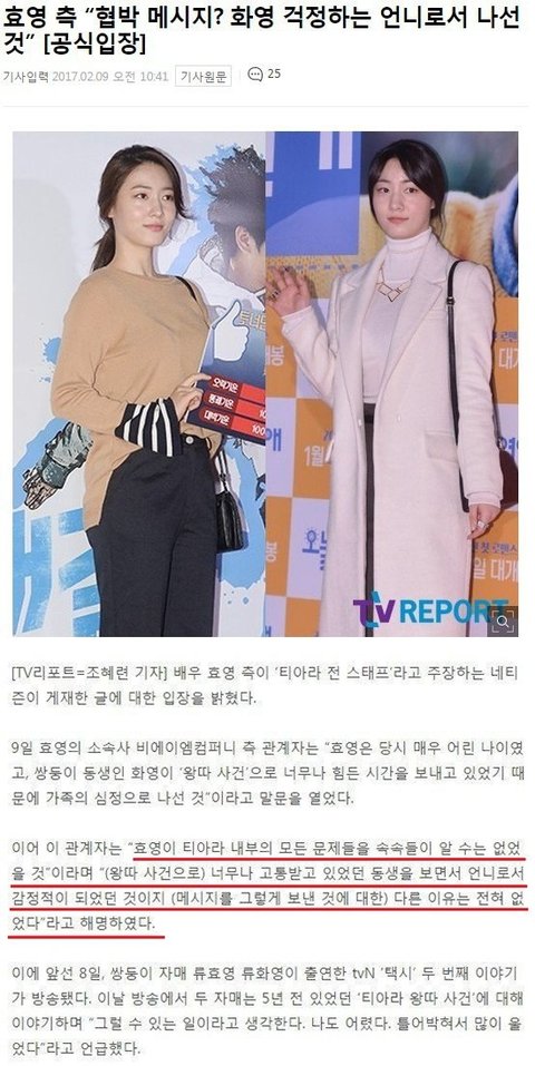 택시에 효영,화영이 출연해서 티아라에서 퇴출된 일을 언급했는데 이걸본 스텝이 글을 올렸어