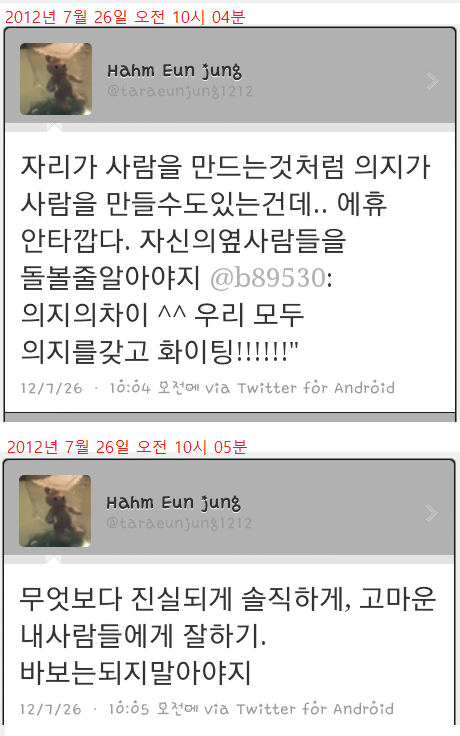 트윗 상황만 봐도 왕따 증거라고 떠도는 자료들이 짜집기를 한 거짓이라는걸 알수있어