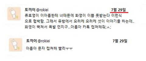 다음날 새벽 화영이 자신의 트위터에 글과 사진을 찍어서 올려
