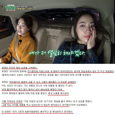 난 택시를 못봐서 효영, 화영이 뭐라고 했는지 찾아봤어