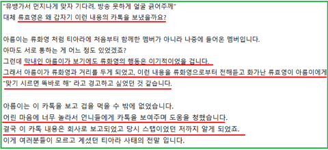 스텝의 증언글이 올라오자 화영은 아름에게 보낸 카톡을 인정하면서 티아라 내부사정을 몰랐다고 해
