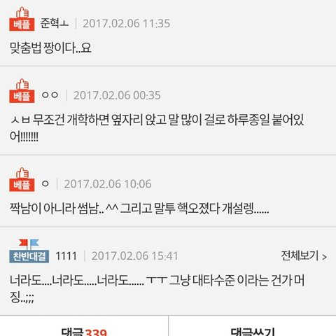 그 10대판에서 베댓이 3개가 있고 하나는 찬반인데