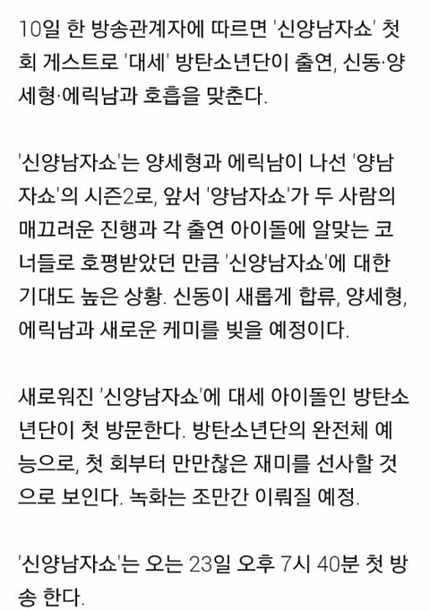 뉴양남1자 쇼 나가는거 나만 지금 알았니??