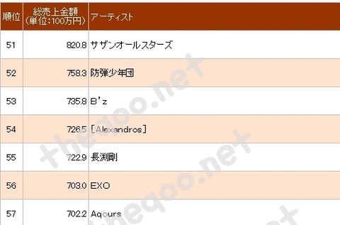 2016년 오리콘 CD,DVD매출액