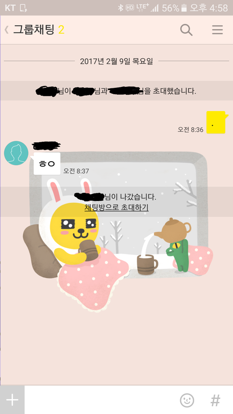 시간도 많이지났고 하니 이 동기가 필자와 여자1의 관계를 회복시켜주려고 단톡방에 초대를했음