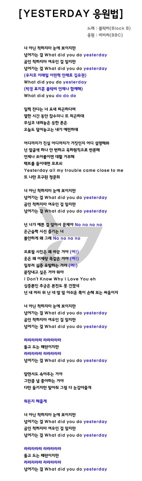 예스터데이 응원법