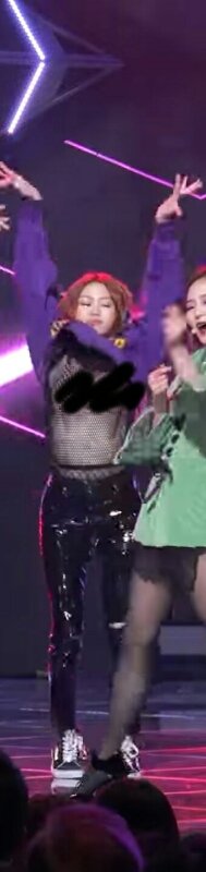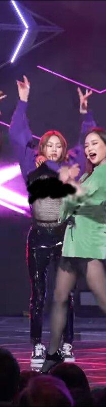 그다음 clc 은빈?은 크롭티를 입혀놨는데 보통 저러면 코디가 당연하게 안에 검정 끈나시나 탑을 입히는게 보통인데 안입혔는지 옷이 올라가서 검정망사 너머로 브래지어가 아예 다보였음 (너무심각해서 가림)