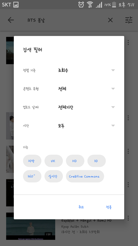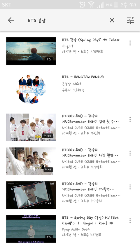 유튜브에 BTS 봄날이라 치고 필터에 조회수 높은 순으로 보기하면 맨 위에 뜬다구?
