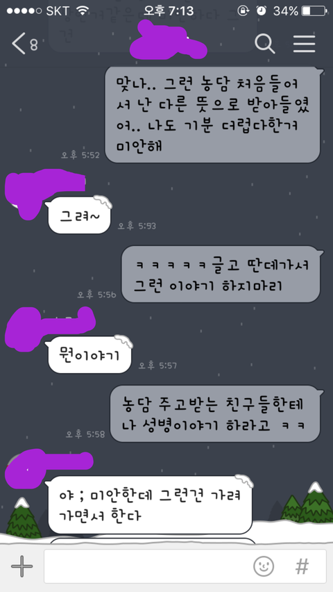 다른 이야기 다 빼고.. 저 대화 보면 오히려 제가 농담 못 받아들이고 못 걸러듣는 애인데ㅋㅋ