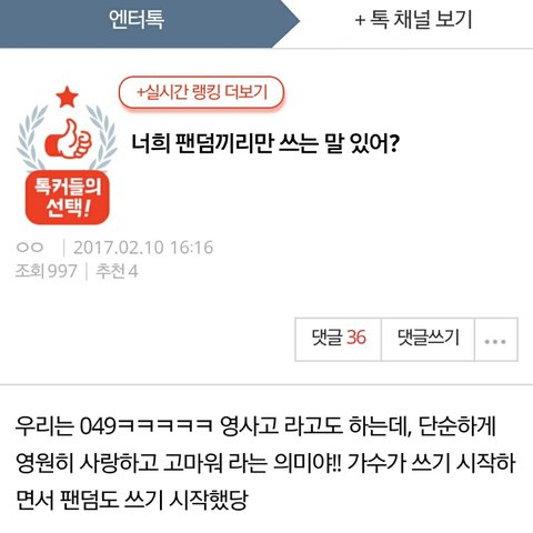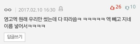 베플인데 니때문에 예민충으로몰려지고있다고;;정작 시초는 우리에다 따라쓰는거 많은건 따로있는데니가이러면 우리뭐만하면 예민충에다 이딴거 부심부린다고 욕먹는다고 병신년아 이글가서 이거반대좀누르셈