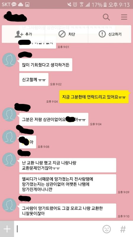 제가 11월에 번개장터로 홈버튼 안되는 아이폰6를 샀는데 유심이 안맞아서 12월에 번개장터에서 갤럭시s6랑 교환을 했는데 저랑 교환하신분이 갑자기 터치가 안된다고 다시 교환하자고 그러시더라구요 터치가 안되는게 엘씨디파손때문에 그런건데 그 엘씨디가 파손된지 7개월이 넘었다고 그러더라구요ㅠㅠ 그러면 제가 사용하다가 파손된게 아니라 저한테 판매하신분이 사용하시다가 파손된건데.. 제가 다시 교환해드리고 제가 수리해서 써야하나요?? 저한테 판매 하신분은 책임이 없는건가요..?