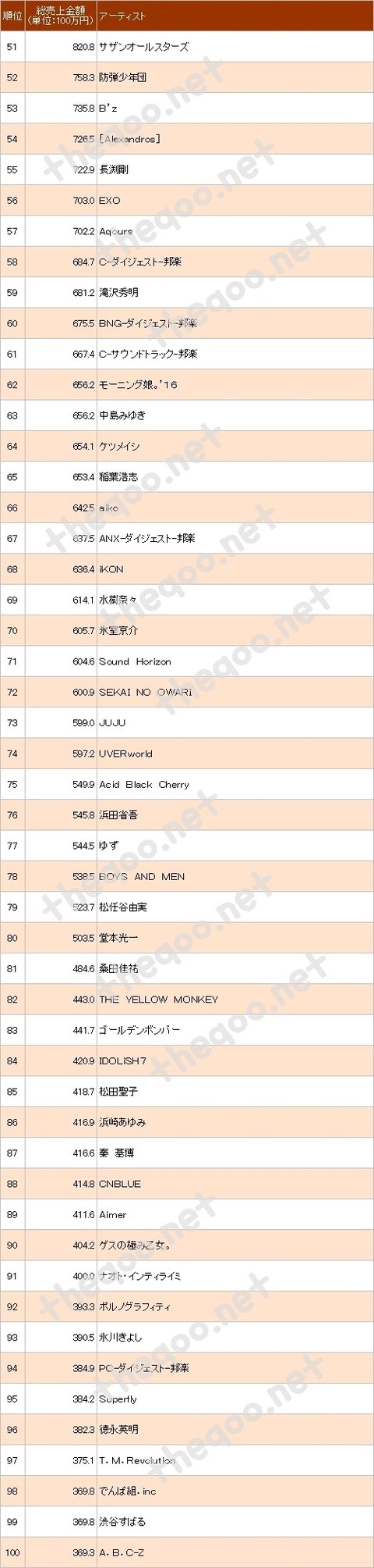 2016년 오리콘 연간 CD,DVD 매출 연간 TOP100 진입