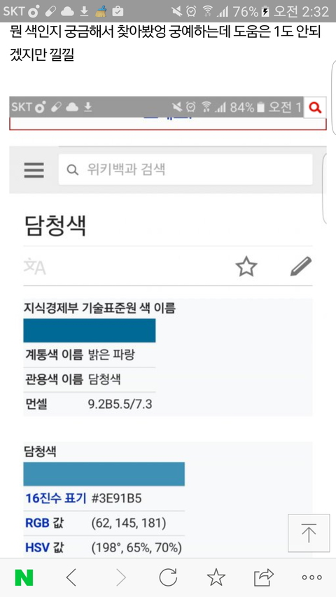 이거 내가 아아아아주 옛날에 올린건데 저기 나오는 감청색 담청색이랑