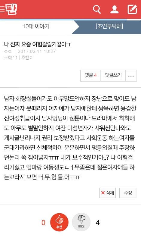 길말필요없는듯. 이곳은 남혐사이트~