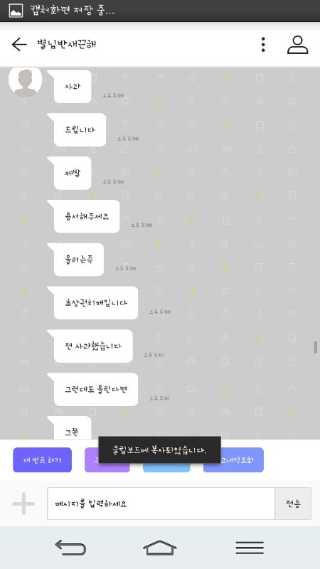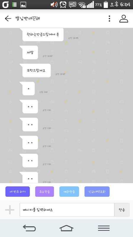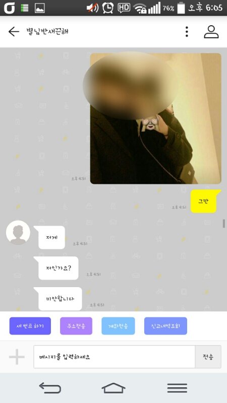 그러다가 어떤 분한테서 연락이 왔고, 저는 답장을 하였습니다. 편의상 A라고 하겠습니다! A는 바로 입금을 하겠다며 계좌번호를 가져가신 상태였고 자세한 사진을 원하신다 하셨습니다. 바로 입금을 하신다고 하셨고 6만원이 적은 금액도 아니니 상세컷을 원하실 수도 있겠다 생각하여 저는 사진을 보냈습니다. 그러자 A는 저보고 다리가 예쁘다며 다리사진을 더 줄 수 있겠냐고 요구를 하였고 저는 이런 일을 처음 당해보았기 때문에 매우 당황스럽고 수치스러웠습니다. 처음에는 좋게 거절을 했지만 A는 설날용돈까지 더 챙겨드리려 했다며 계속 다리사진을 요구해왔습니다. 저는 아무리 돈이 필요해도 저의 몸사진을 찍어서 모르는 사람에게 성적으로 팔 생각은 전혀 없습니다. 따라서 엄청난 불쾌감을 느꼈고 거절내용의 톡을 계속 보냈지만 A는 끈질기게 저의 다리사진을 요구해 저는 상대해봤자 피곤해질 뿐이라는 것을 깨닫고 톡을 무시했습니다. 그러자 A는 갑자기 도배를 하기 시작했고 계속 답장을 하라고 요구했습니다. 그래서 제가 물음표 하나를 보내자 또 다시 다리사진을 요구했고 저는 그 톡을 또다시 무시했습니다. 그러자 A는 또 도배를 시작했고 저는 일부러 시간차를 두고 들어가 읽씹을 하고 나왔습니다.