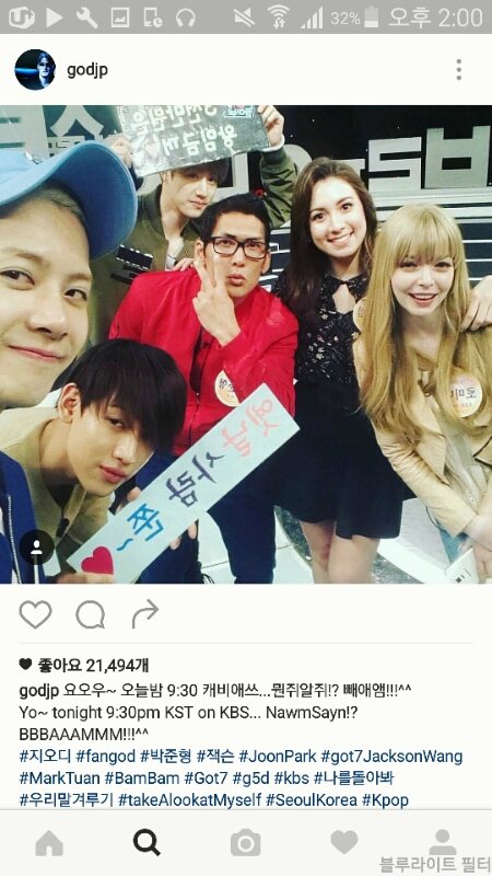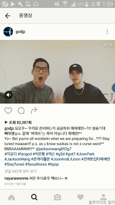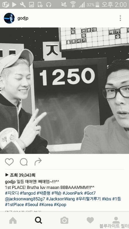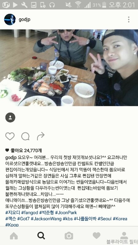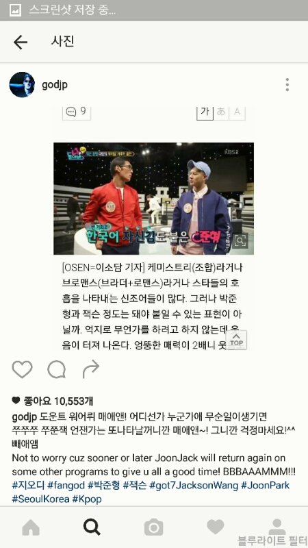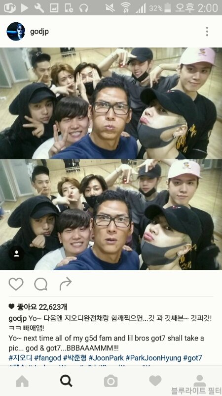 갓세븐 멤버 잭슨과 지오디 박준형이 친해서 박준형sns에 잭슨이 박준형체와 함께 자주 등장..ㅎ